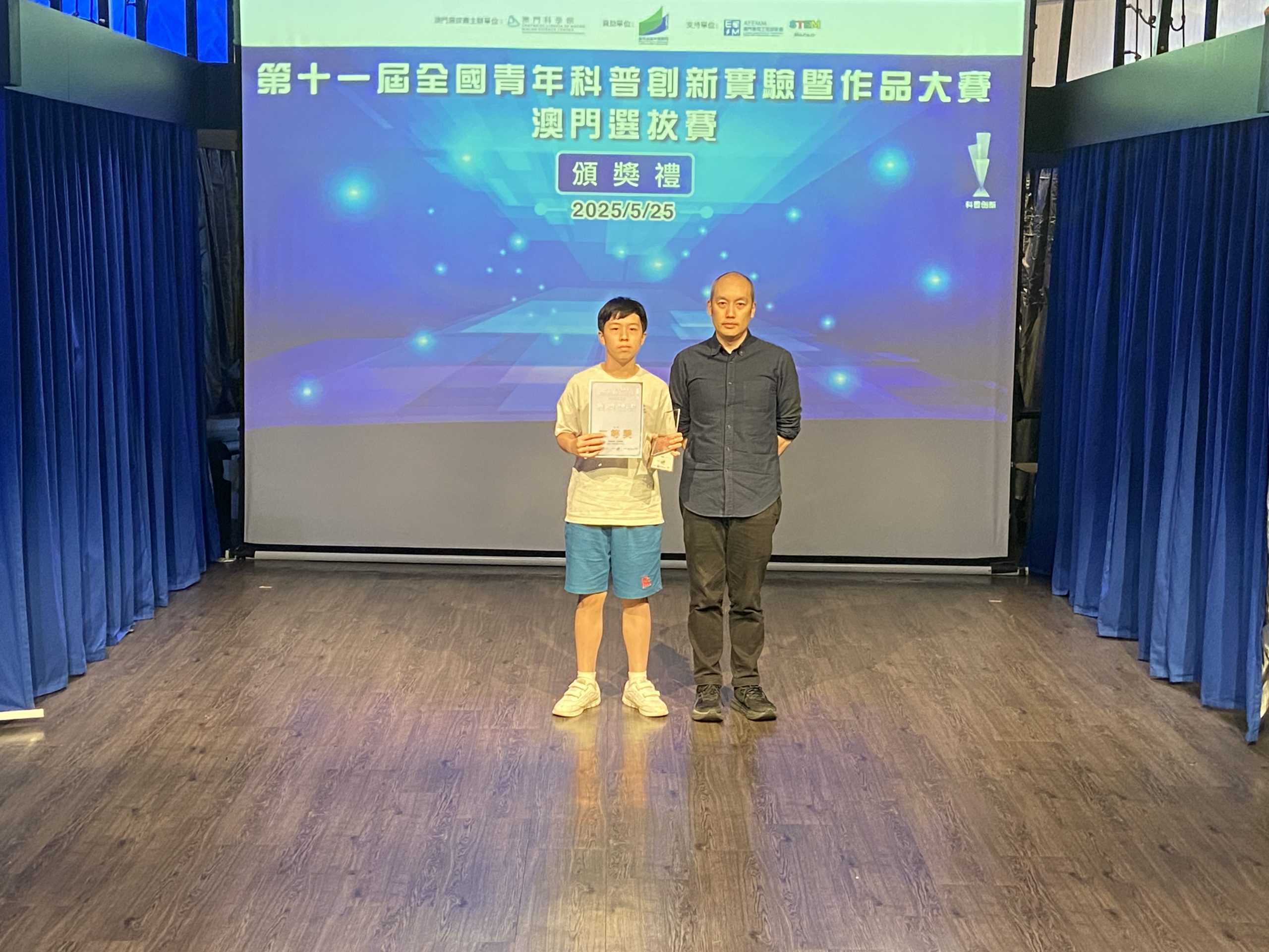 在2025年5月25日結束的「第十一屆全國青年科普創新實驗暨作品大賽澳門選拔賽」中,本校參賽隊員初二善陸振凡、初二善吳慕潼在「科普實驗-未來太空車(中學組)」項目中表現優秀,從31支參賽隊伍中脫穎而出,榮獲第二名的優異成績。