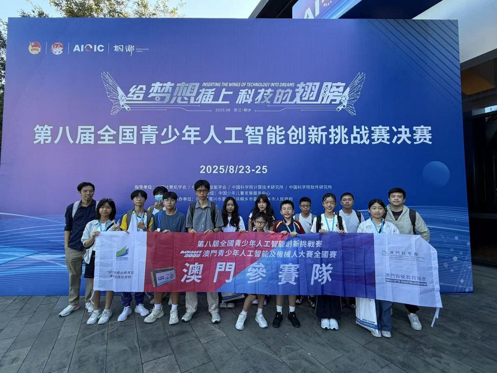 創新項目 本校學生勇奪第八屆全國青少年人工智能創新挑戰賽金銀奬佳績 2025 年 9 月 11 日2025 年 9 月 15 日 0 Comments 創新130 Views 第八屆全國青少年人工智能創新挑戰賽於8月23日至25日在浙江桐鄉烏鎮舉行,本校學生於本地賽事中表現優異,獲晉級全國總決賽資格。總決賽採用抽籤混編形式,將澳門學生與來自全國不同省市的學生進行臨時編組。參賽隊伍需靈活運用開源硬件與人工智能技術,於限時、高強度的合作環境下進行構想、方案設計、智能模塊選型、原型優化與功能演示等全方面的創作。 最終得獎學生如下:高中組金獎:林康晴(高二望)高中組銀獎:伍琛悅(高二光)初中組銀獎:彭裕祥(初二望)指導老師:何城坤