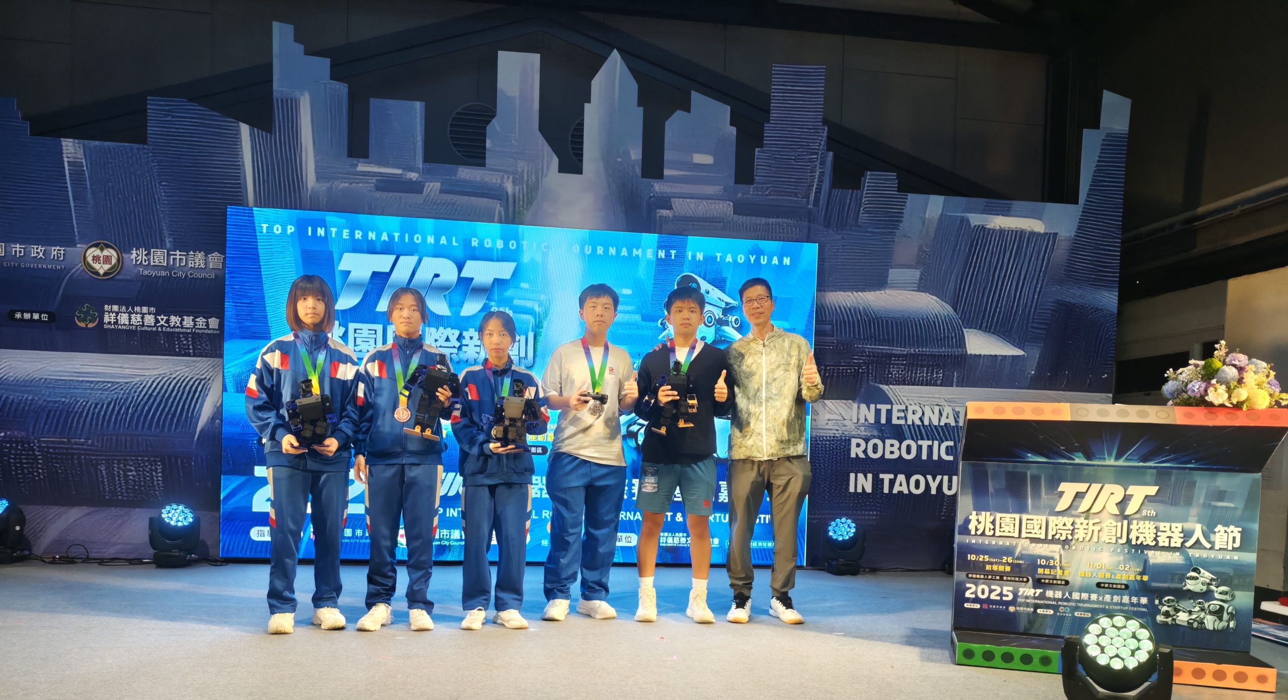 我校初三級五位同學:S3F陳茵桐、S3D陸振凡、S3D許潤培、S3F朱玥盈、S3F歐陽詠怡,日前赴台灣參加「2025TIRT人型機器人-保齡球競賽」,憑藉穩健的表現,在比賽競逐中取得了良好成績,分別榮獲蓮花獎第一、二、三名。這次獲獎是對我校教學模式的積極反映,體現了課堂知識與課後實踐的有效銜接。這五位同學的機器人技術學習,始於初二時的設計與科學課堂。當時在設科老師的指導下,他們掌握了二足機器人的基礎建構與編程知識,為後續的深入探索打下了穩固的根基。升讀初三後,同學們主動利用課餘時間組成興趣小組,在老師的帶領下繼續鑽研,將課堂所學應用於解決競賽中的實際難題。這次的成果,是同學們持之以恆的努力與老師悉心指導的體現,亦是我校推動STEM教育、鼓勵學生動手實踐的成果。