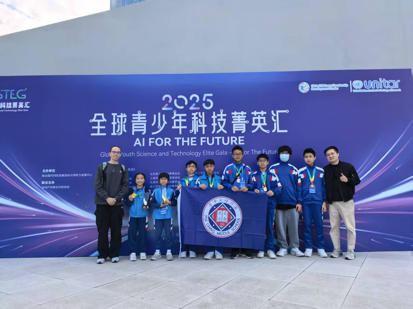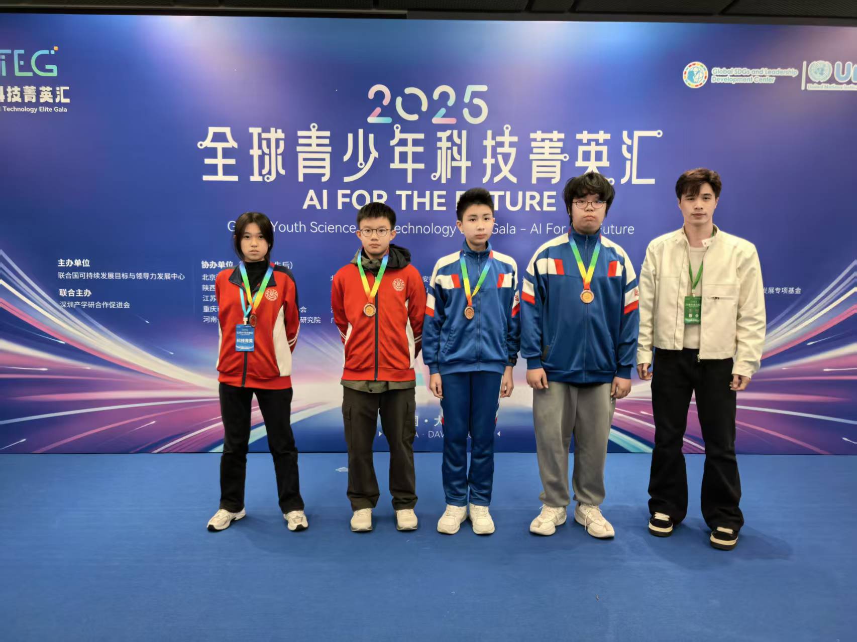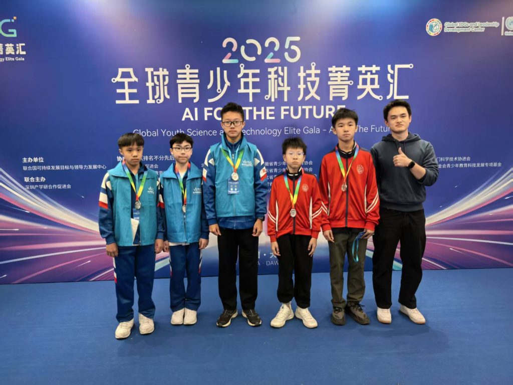 2025全球青少年菁英匯於11月22日在深圳理工大學順利舉行,吸引來自大灣區多地的學生踴躍參與。我校派出由八名學生組成的代表隊,參加「SUPER AI智能工廠」競賽項目,並憑藉出色表現,在各組別中脫穎而出,奪得多項殊榮,展現我校學生在機器人領域的實力與堅毅精神。