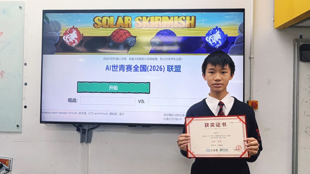最新消息編程解難 劉晉亨同學勇奪AI世青賽中學組榜首 2025 年 12 月 18 日2025 年 12 月 18 日 0 Comments CodeCombat 2025年秋季AI世青賽省級賽事,由全國精英參賽者角逐,力爭取得12月全國賽的資格。 是次比賽採用創新的演算法對戰模式。選手需在為期三個月的比賽期間,根據對手策略持續優化程式碼,靈活調整演算法,以提升排名。 在這場高手如雲的賽事中,我校初三級學生劉晉亨以全局榜首的姿態,在中學組以第一名脫穎而出。劉同學以精煉的代碼,展現出卓越的編程實力與策略思維,成功進身全國賽,為校增光,可喜可賀!