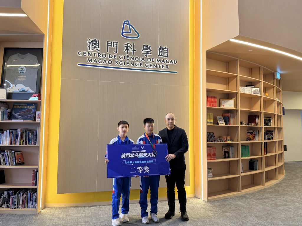 2026年2月7日(星期六),我校無人機學社學生參加了在澳門科學館會議中心會議廳舉行的2025/2026學年「澳門北斗航天大賽」——《北斗無人機編程應用創意賽》。本次大賽由澳門科學館主辦、澳門國際青年創新創意協會(MIYICA)承辦,旨在將當前熱門的北斗衛星與無人機技術相結合,推動人工智能領域的科技教育,激發青少年對人工智能的無限潛能。我校派出2隊伍參賽,在吳振華老師的帶領下,與來自本澳多所學校的隊伍同場競技,最終其中一隊憑藉出色的編程能力及穩定的臨場發揮,榮獲二等獎殊榮。