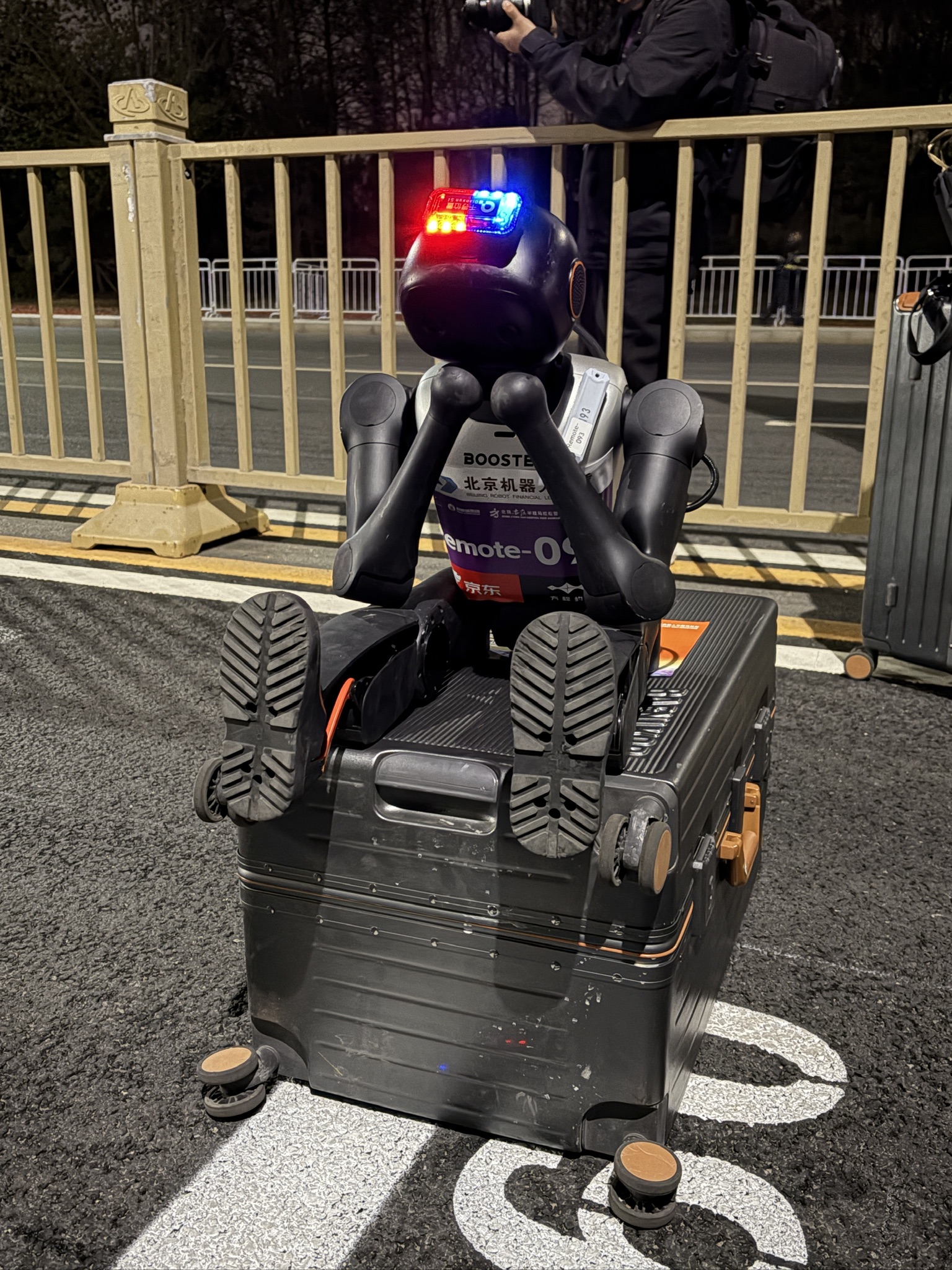 我校師生近日赴北京亦莊,參與「二〇二六北京人形機器人半程馬拉松」測試活動,與澳門科技大學及國際合作成員組成兩支聯隊,為即將舉行的正式賽事作準備。是次測試於四月十一日晚至十二日凌晨進行,按正賽標準全面模擬賽道通行、流程調度、設備協同及應急保障等環節,並為四月十九日正式賽事積極備戰。