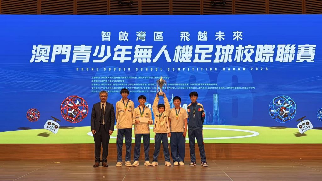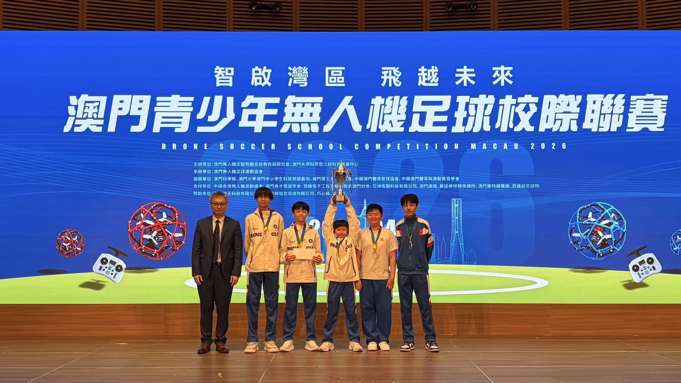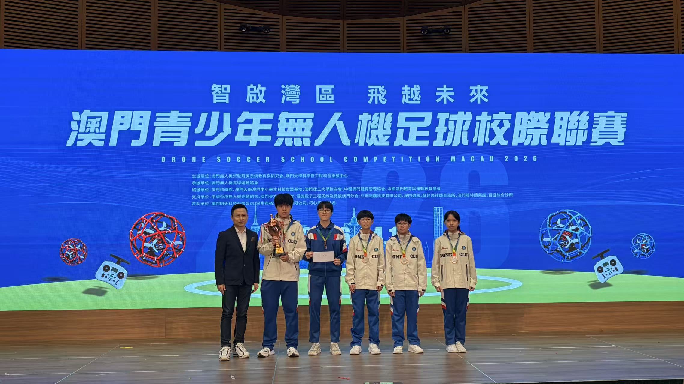 在4月12日於澳門科學館圓滿落幕的「澳門青少年無人機足球校際聯賽」中,我校派出的兩支代表隊憑藉出色的技術、默契的團隊配合與穩定的臨場發揮,從眾多參賽隊伍中脫穎而出,分別奪得「亞軍」與「季軍」的優異成績,為校爭光。